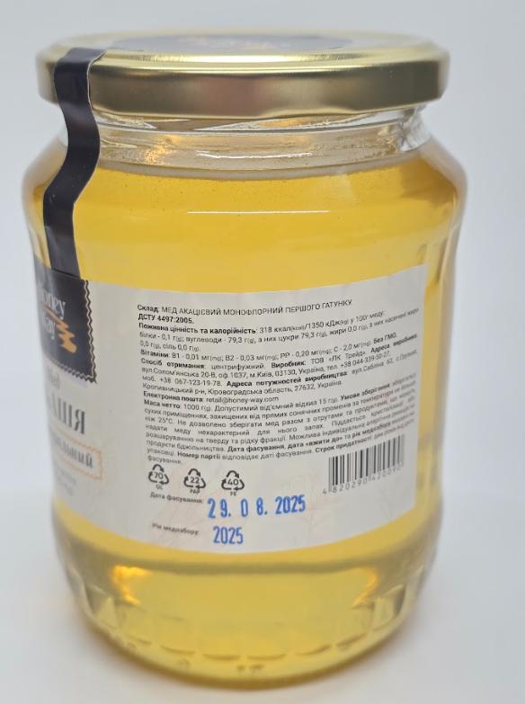 Склад: МЕД АКАЦІЄВИЙ МОНОФЛОРНИЙ ПЕРШОГО ГАТУНКУ.